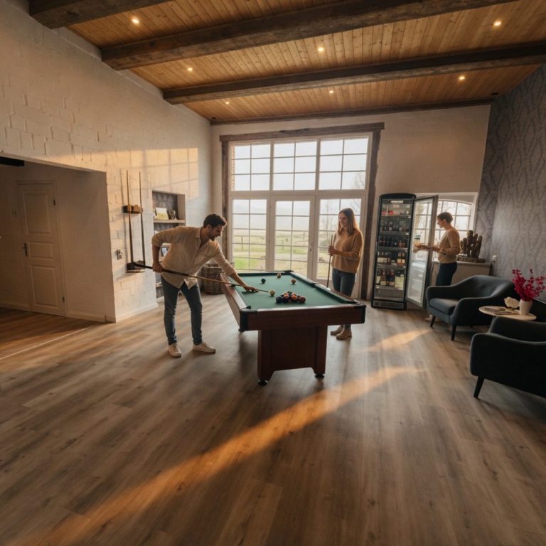 Über die ehemalige Loh des Hauses wurde früher das Heu auf den Boden gebracht. Heute befindet sich hier die Rezeption sowie ein gemütlicher Raum zum Schnacken. Der Billardtisch steht kostenlos zur Verfügung – ideal für eine entspannte Runde. Im Kühlschrank warten kühle Flens und erfrischende Limos auf Euch, perfekt, um den Abend in guter Gesellschaft ausklingen zu lassen.