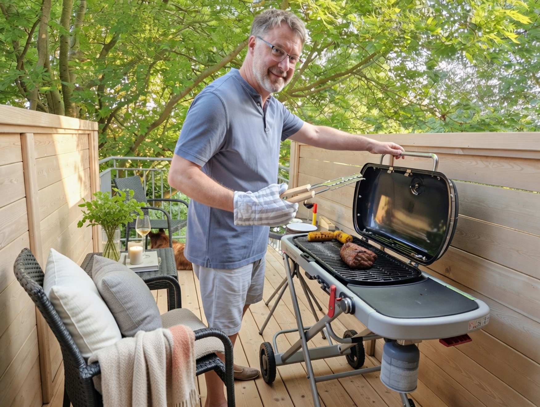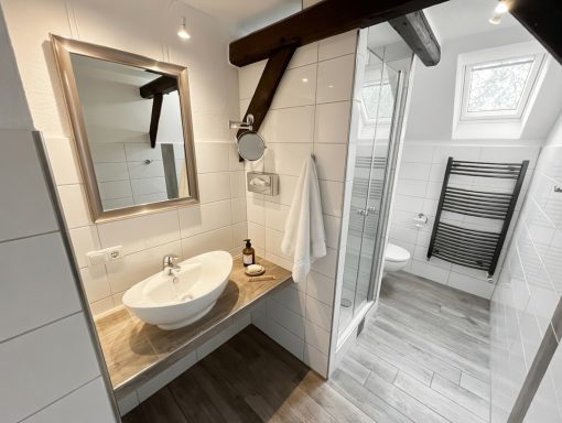 Nr. 3 befindet sich im Obergeschoss des Hauses und bietet einen einzigartigen Blick auf die Umgebung. Werfen Sie einen Blick auf die Fotos, um die besonderen Details zu entdecken: Verkleidungen aus historischem Eichenholz und stylische Küchengeräte von Smeg. Ein Highlight ist die "in den Bäumen" Terrasse – ausgestattet mit einem Weber Gas-Grill, ideal für gemütliche Grillabende inmitten der Natur.